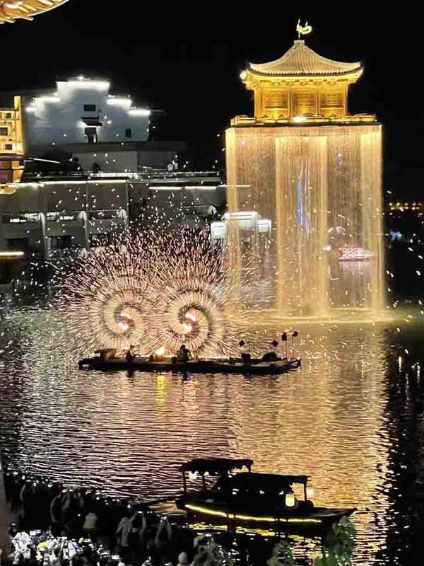 The trip kicked off with an immersive evening at Wunvzhou Scenic Area. As night fell, we enjoyed a spectacular live performance. Intangible cultural heritage of iron flower making and Water-fire kettle impressive us most.