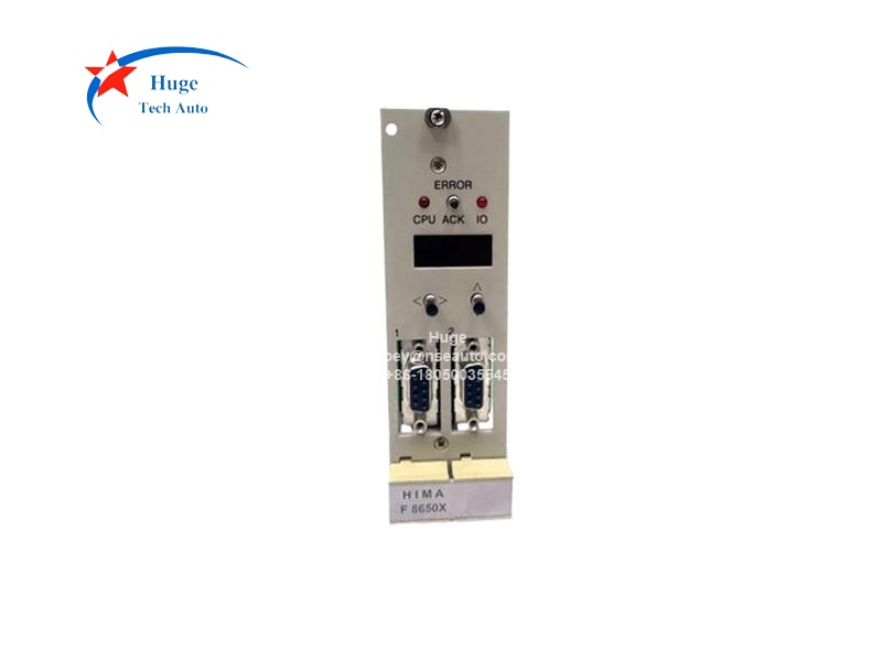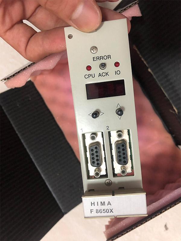 F8650X is designed as Hima Central module with two clock-synchronized microprocessors. F8650X can be used in SIL 3 safety systems. It has 2 interfaces on the front panel, also with 2 leds for the general display of errors.